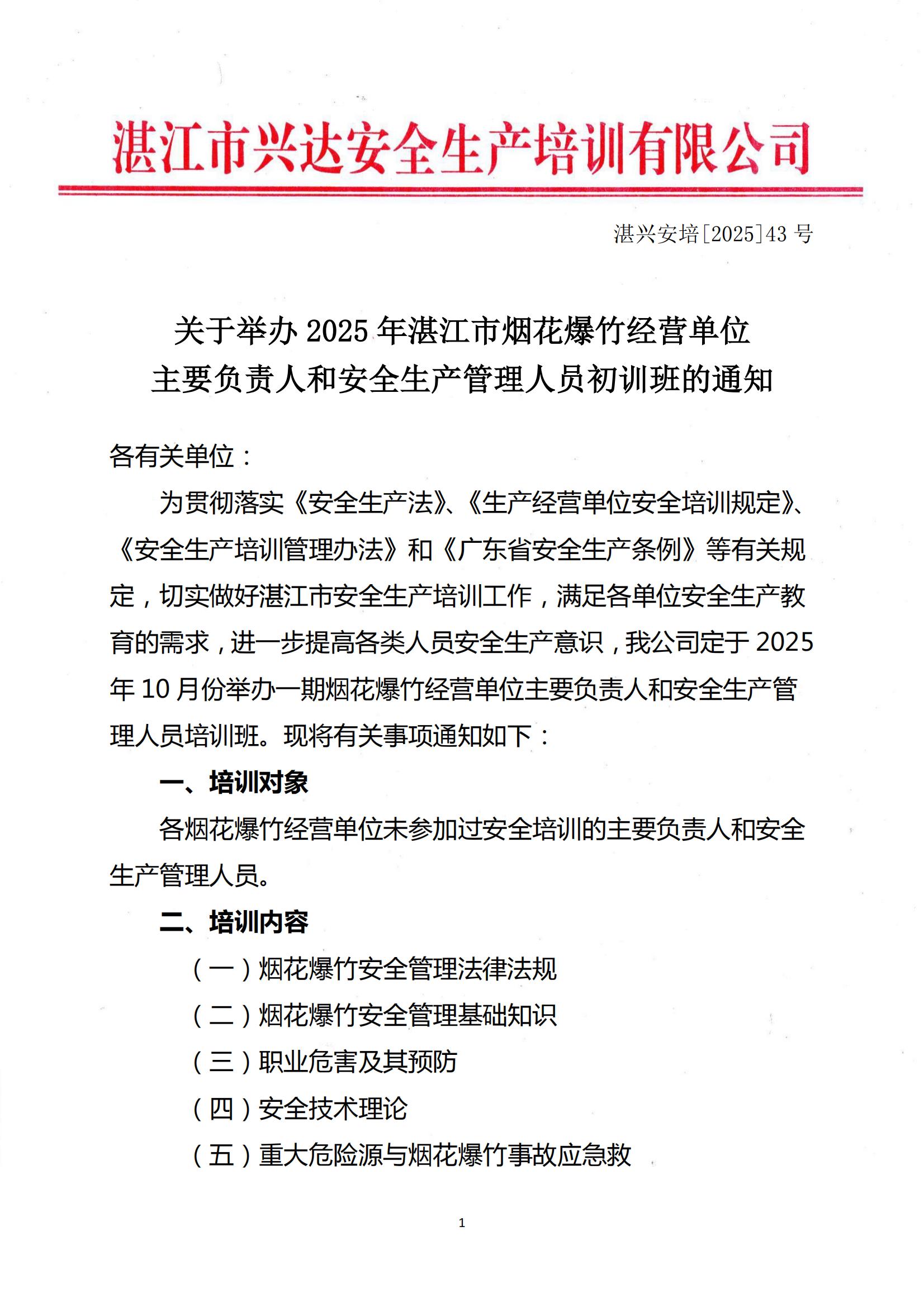 43号文(遂溪线上)烟花爆竹初训班的通知10.16-10.2